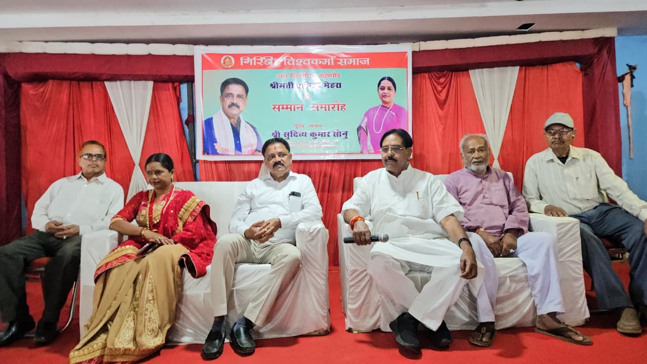 Jharkhand (Giridih): विश्वकर्मा समाज के द्वारा रविवार को विवाह भवन में नव निर्वाचित महापौर प्रमिला मेहरा के सम्मान में एक सम्मान समारोह का आयोजन किया गया. समारोह में बतौर मुख्य अतिथि गिरिडीह विधायक सह नगर विकास मंत्री सुदिव्य कुमार उपस्थित थे.